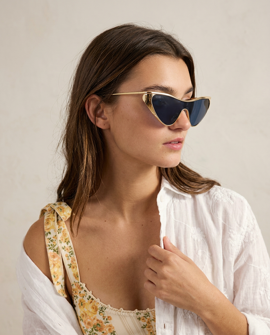 Sleek. Dramatic. Unapologetic. A sculpted silhouette wrapped in a polished gold frame, designed to command attention the second you walk into the light.
