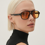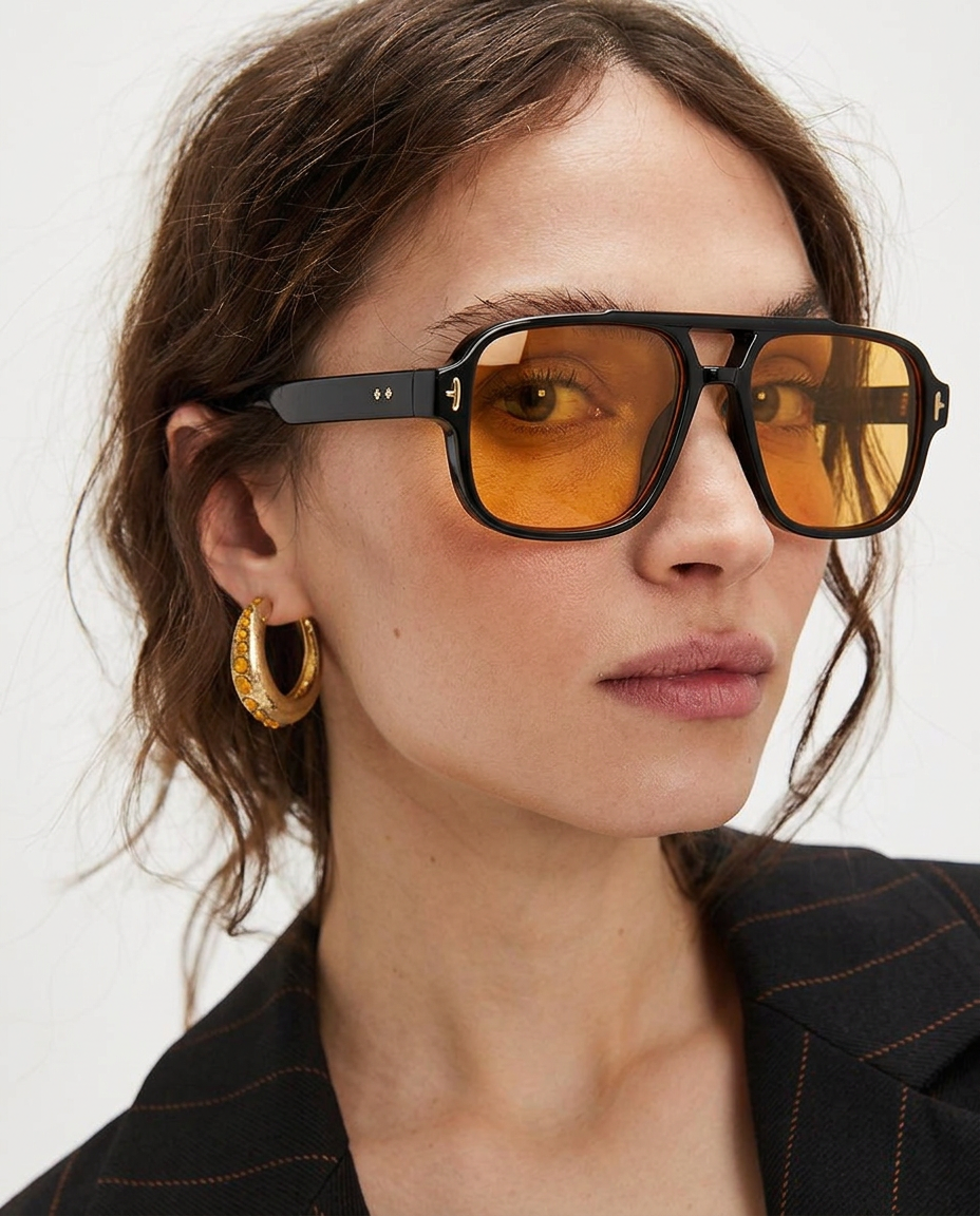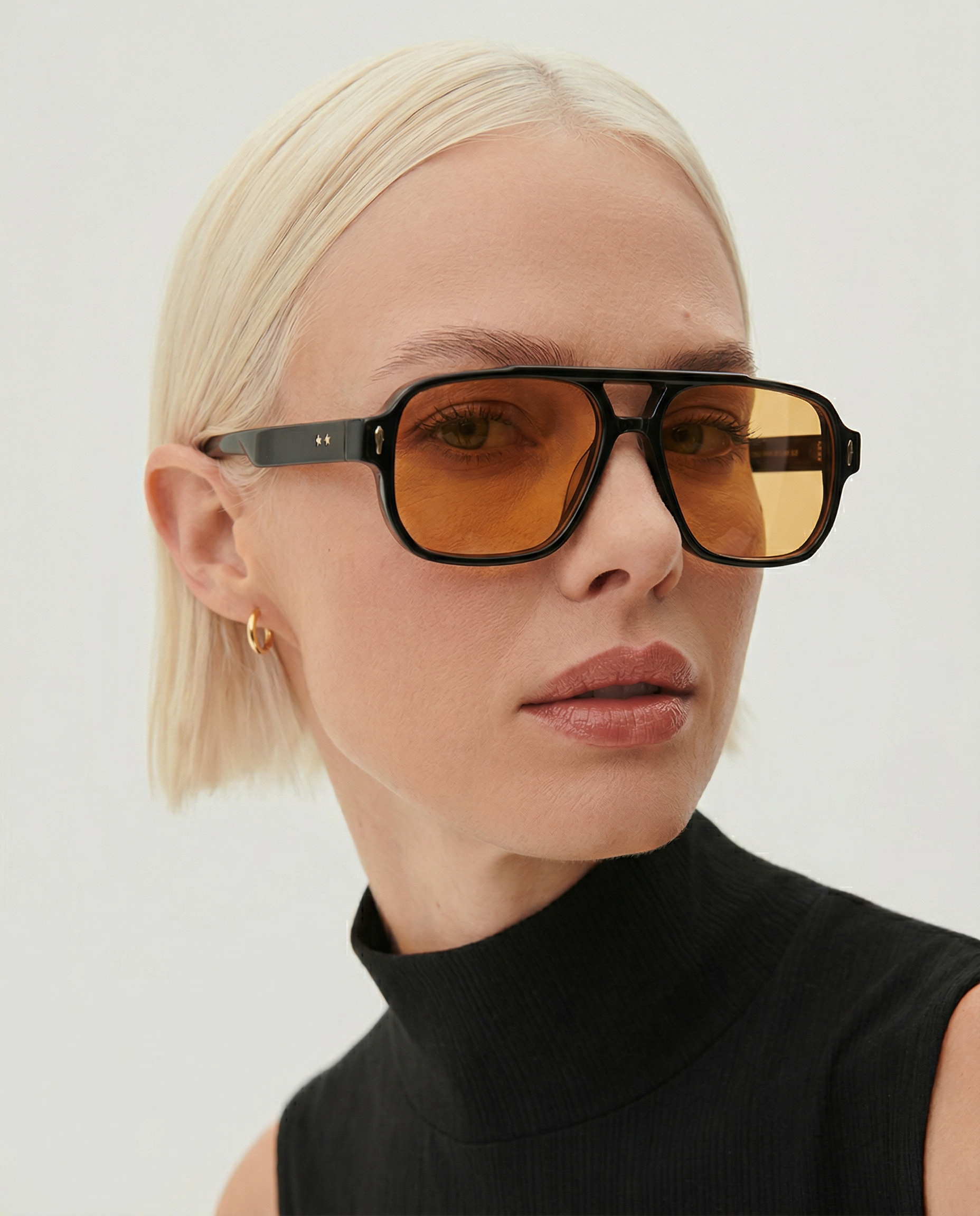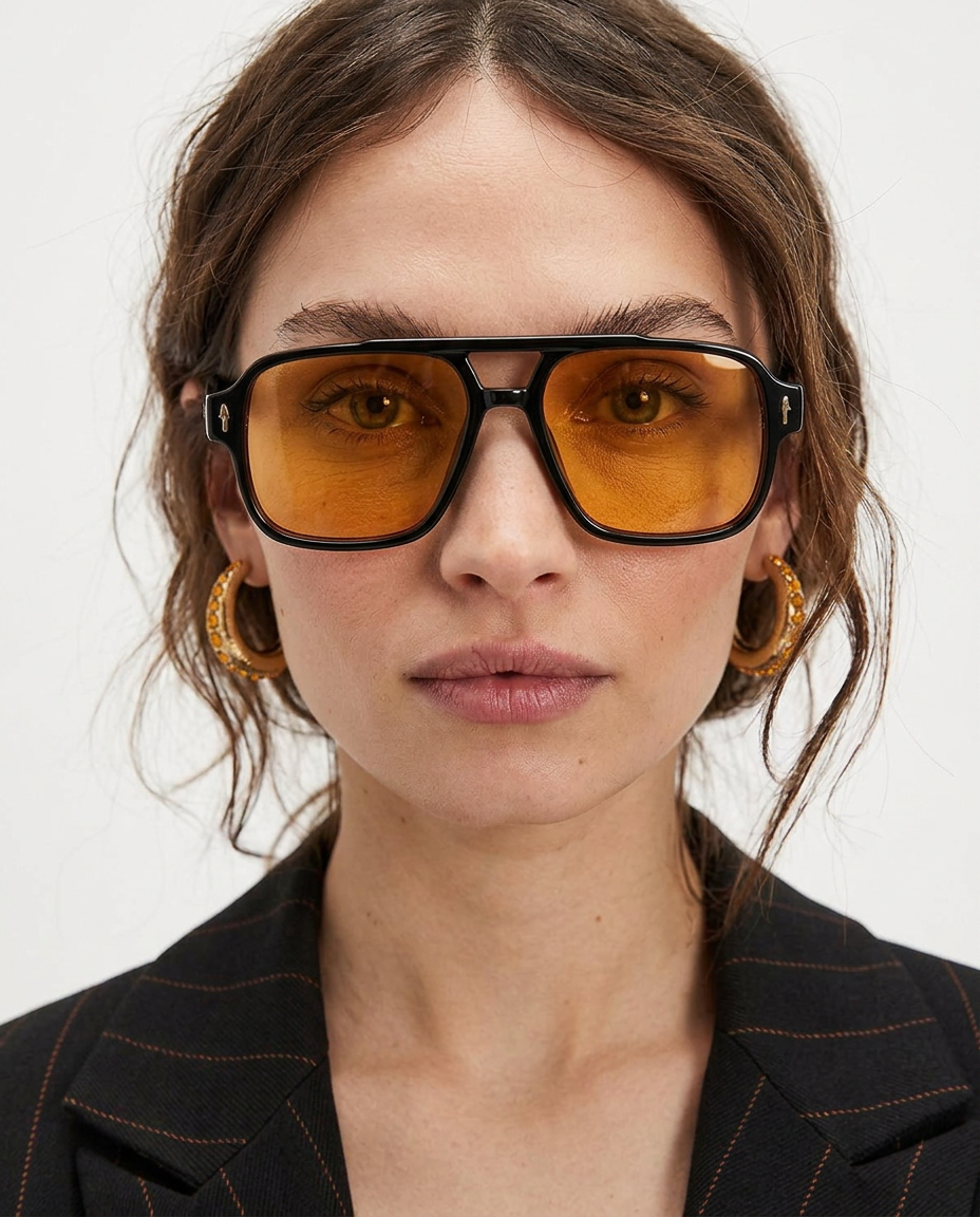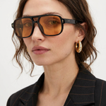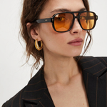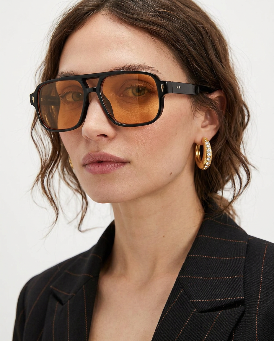 Bold, clean, and impossible to ignore. The oversized square silhouette paired with warm-tinted lenses delivers that effortless cool energy — structured enough to sharpen a look, relaxed enough for everyday wear.