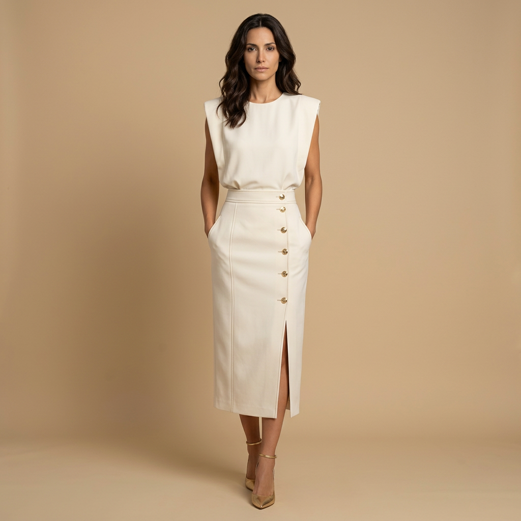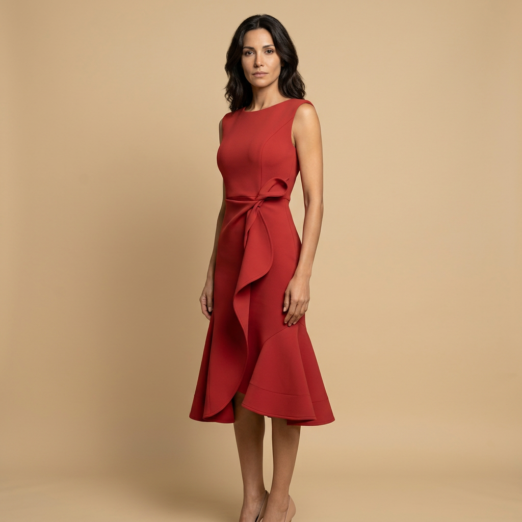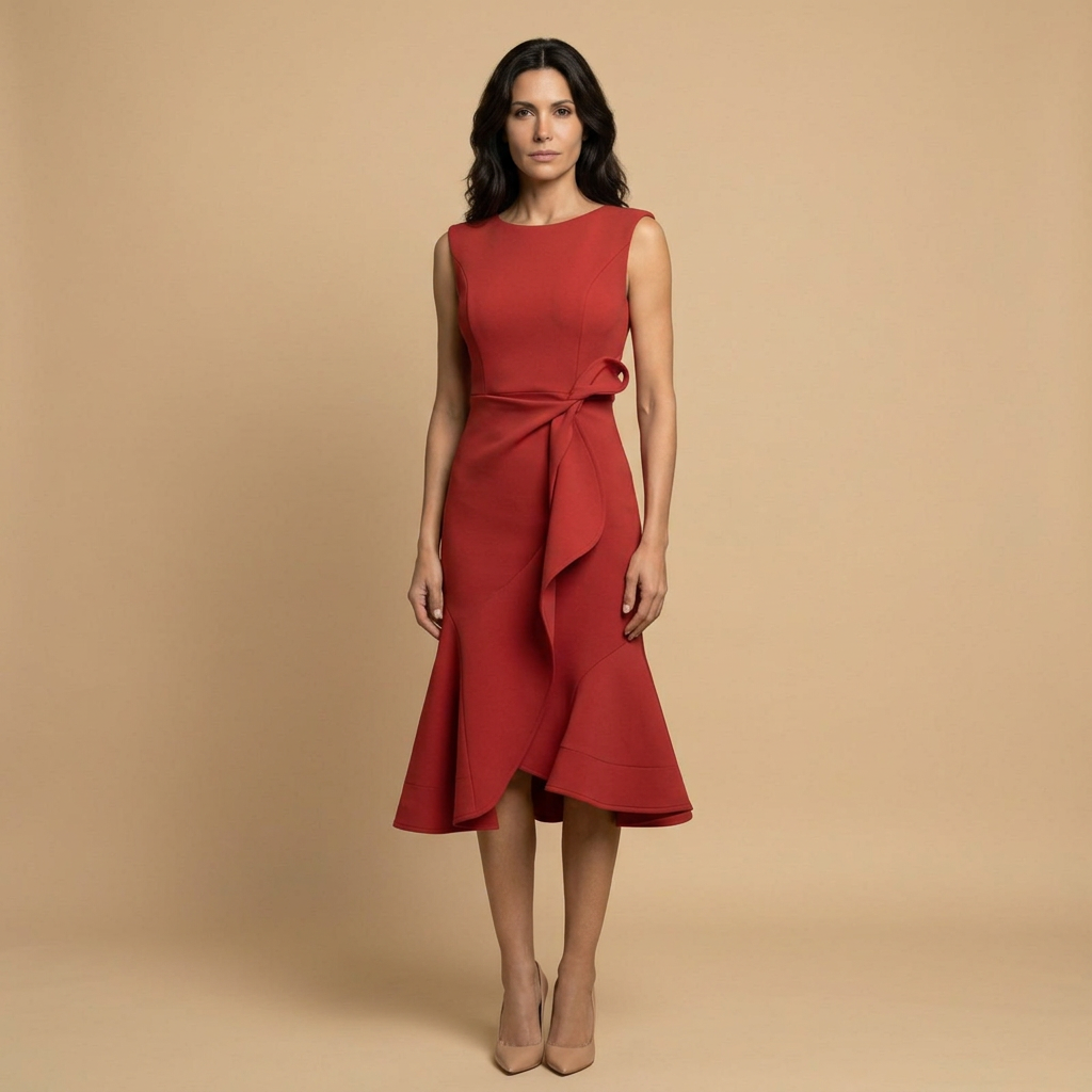 • Peplum estructurado con paneles verticales: El vuelo controlado desde la cintura enmarca la cadera con elegancia y favorece todo tipo de figura sin comprometer la silueta.